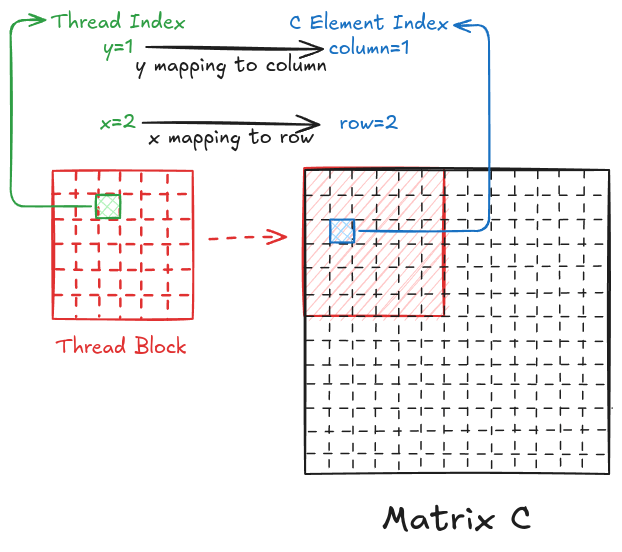 However, I can also map the y index of the thread to the column of matrix C and the x index of the thread to the row of matrix C.